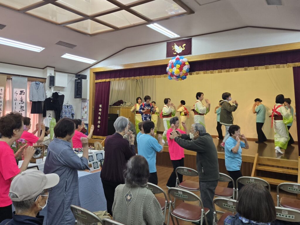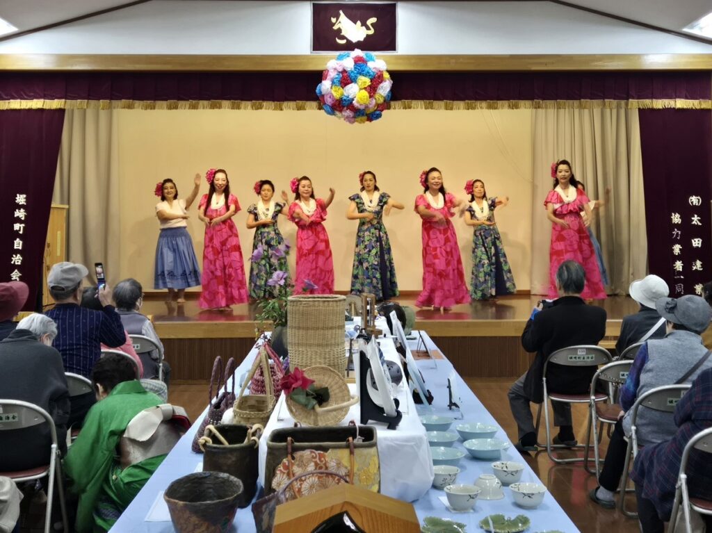 舞台発表:堀崎武州太鼓/(フラダンス)ハーラウ オ ケアラ アロアロ/(コーラス)堀崎歌う会ひまわり/(民謡)崇翠会/(民踊)美咲会/(詩吟)桜吟会